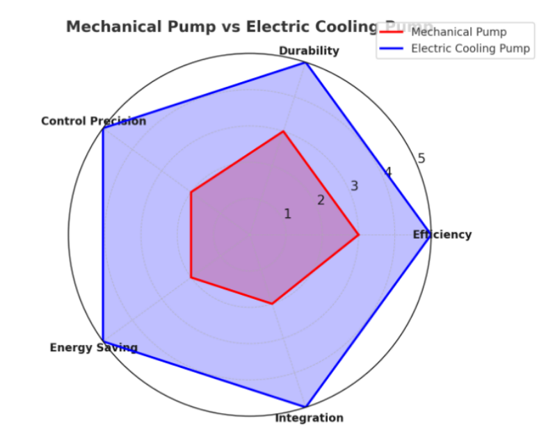 Pompa pendingin elektrik mengungguli pompa mekanis dalam berbagai dimensi kinerja utama: