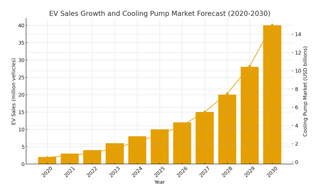Gambar 2. Penjualan EV dan Prakiraan Pasar Pompa Pendingin (2020–2030)